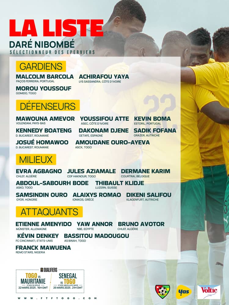 La liste du Togo face à la Mauritanie et au Sénégal : https://civilemagazine.tg/wp-content/uploads/2025/03/Liste-des-eperviers-@-mars-2025.jpg